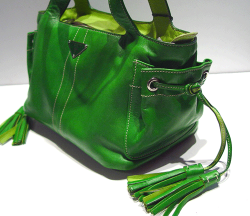 그린 컬러 가죽 소재 프라다