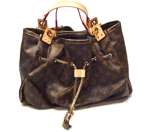 루이비통의 클래식인 모노그램 캔버스 소재의 이렌느 백은 대조적인 세퀸 레더 트리밍과 주름 장식, 드로우스트링 클로저로 디자인되었습니다.