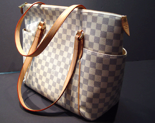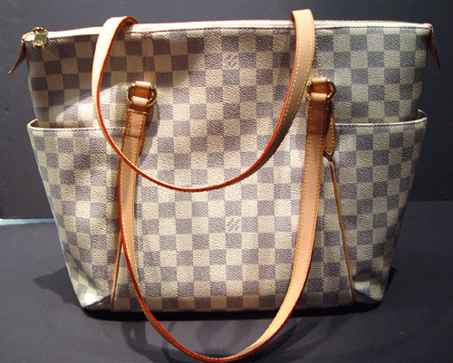 - 다미에 캔버스, 텍스타일 라이닝, 천연 소가죽 트리밍.