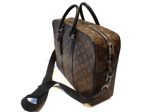 루이비통 다큐먼트 보야지 GM입니다. 모노그램라 마카사 라인으로 15인치 노트북을 수납할수 있는 넉넉한 내부와 편안한 어깨 스트랩이 있어 숄더백으로 사용 가능합니다.(스트랩 탈부착 가능함) 캐리어 여행백에 부착할수 있어 편리하게 사용할수 있습니다. 손잡이 때탐이 있지만 전체적으로 흠없이 제품 우수합니다. 제품상태등급 : A 사이즈 : 41 * 31 * 12cm 부속물 : 숄더 스트랩,자물쇠(키없음) 원산지 : 프랑스 티씨코드 : IR0130