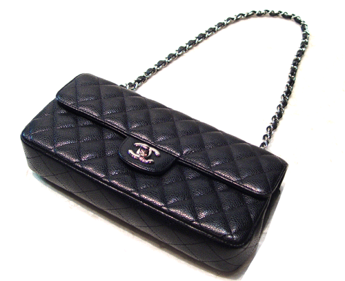 샤넬 캐비어 은장 체인 숄더백입니다.