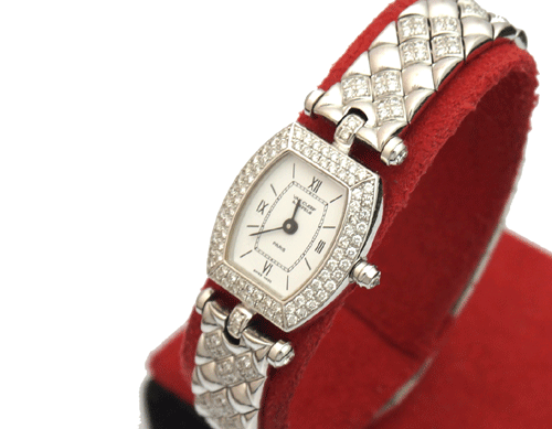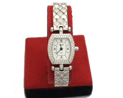Van Cleef & Arpels 여성 시계입니다. 18k 화이트 골드의 오리지날 다이아 몬드 세팅입니다. 제품상태등급 : A 사이즈 : 18mm * 20mm 밴드 안쪽 길이 : 14.8cm 부속품 : 박스, 보증서 원산지 : 스위스