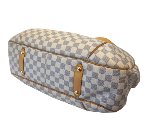 - 루이비통 아주르 갈리에라 GM - 가장 큰 사이즈로 수납력 매우 좋고 빅백 좋아하시는분들께 추천해드립니다. - 아주르 캔버스, 마이크로파이버 라이닝, 천연 소가죽 트리밍 - 골드 금장 장식 - 마그네틱 클로져 - 내부의 플랩 앤 프레스 스터드 클로저로 된 포켓, 핸드폰 수납 공간, 키홀더와 퍼스에 연결가능한 내부 의 D- 링 - 숄더 백으로 연출 가능 - 길이 조절이 가능한 스트랩 - LV 인벤쳐의 메탈 플레이트. - 똑딱이 자석 오픈형. 상태 : 태닝 30% 정도 진행되었으며 내부 스웨이드 소재 깨끗합니다. 그리고 그외 부분은 제품상태 좋습니다. 제품상태등급 : A 사이즈 : 가로 46 * 폭 13 * 높이 32(cm) 부속물 : 더스트 원산지 : 프랑스 티씨코드 : SP4160