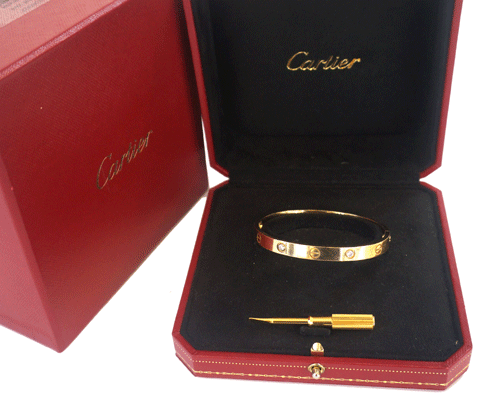 까르띠에 러브 팔찌입니다. 사이즈 : 17호 소재 : 18k 옐로우 골드 + 4개의 포인트 다이아몬드 부속품 : 박스, 보증서, 드라이버 원산지 : 이탈리아 국내 구매(부산 신세계 센텀 시티점)