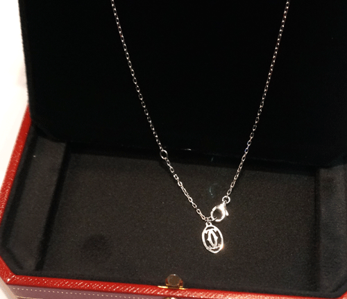 까르띠에 목걸이 소재 : 18k 화이트 골드 + 다이아몬드(1.5부 정도 됩니다.) 목걸이 총길이 : 42cm 총무게 : 3.4g 부속품 : 케이스 원산지 : 이탈리아