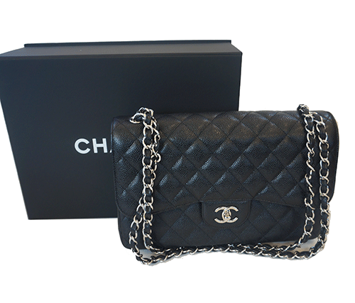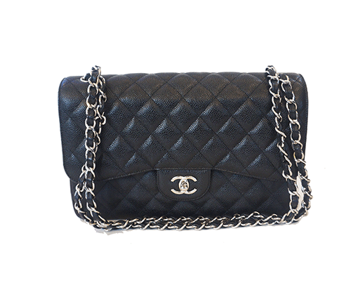 샤넬 클래식 캐비어 점보 숄더백입니다. 은장 장식이며 캐비어 송아지 가죽 소재입니다. 전체적으로 상태 아주 좋습니다.